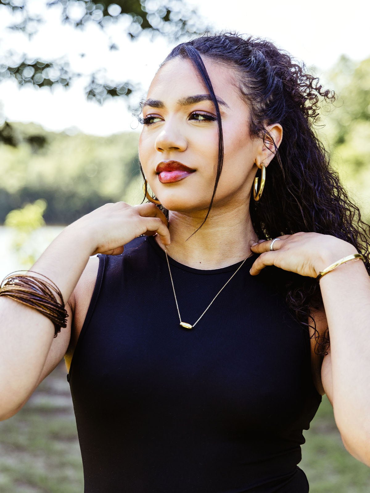Minimalist and bold. the Jasiri Gold Pendant Necklace ?C Horizontal from the Nguvu Collection is a modern symbol of strength. Handcrafted by artisans in Kenya using upcycled brass. this sleek. oblong pendant is cast and polished to perfection. Measuring approximately 0.28″ x 0.59″. the horizontal pendant rests elegantly on a 22?? gold-toned chain. making it ideal for layering or wearing solo. Named Jasiri??meaning “brave” in Swahili??this ethically made piece empowers women with each wear and celebrates the beauty of bold simplicity.